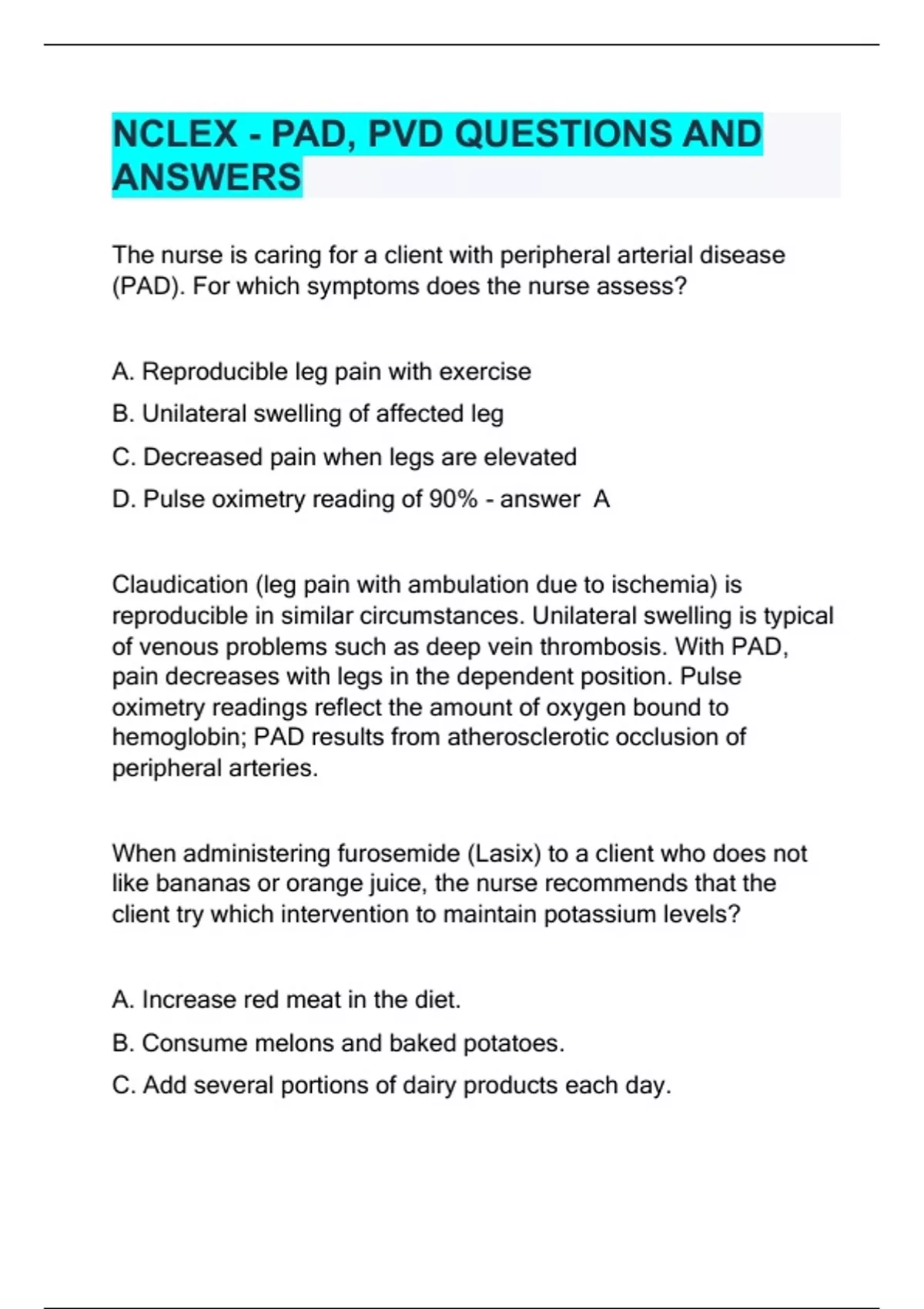 NCLEX - PAD, PVD QUESTIONS AND ANSWERS