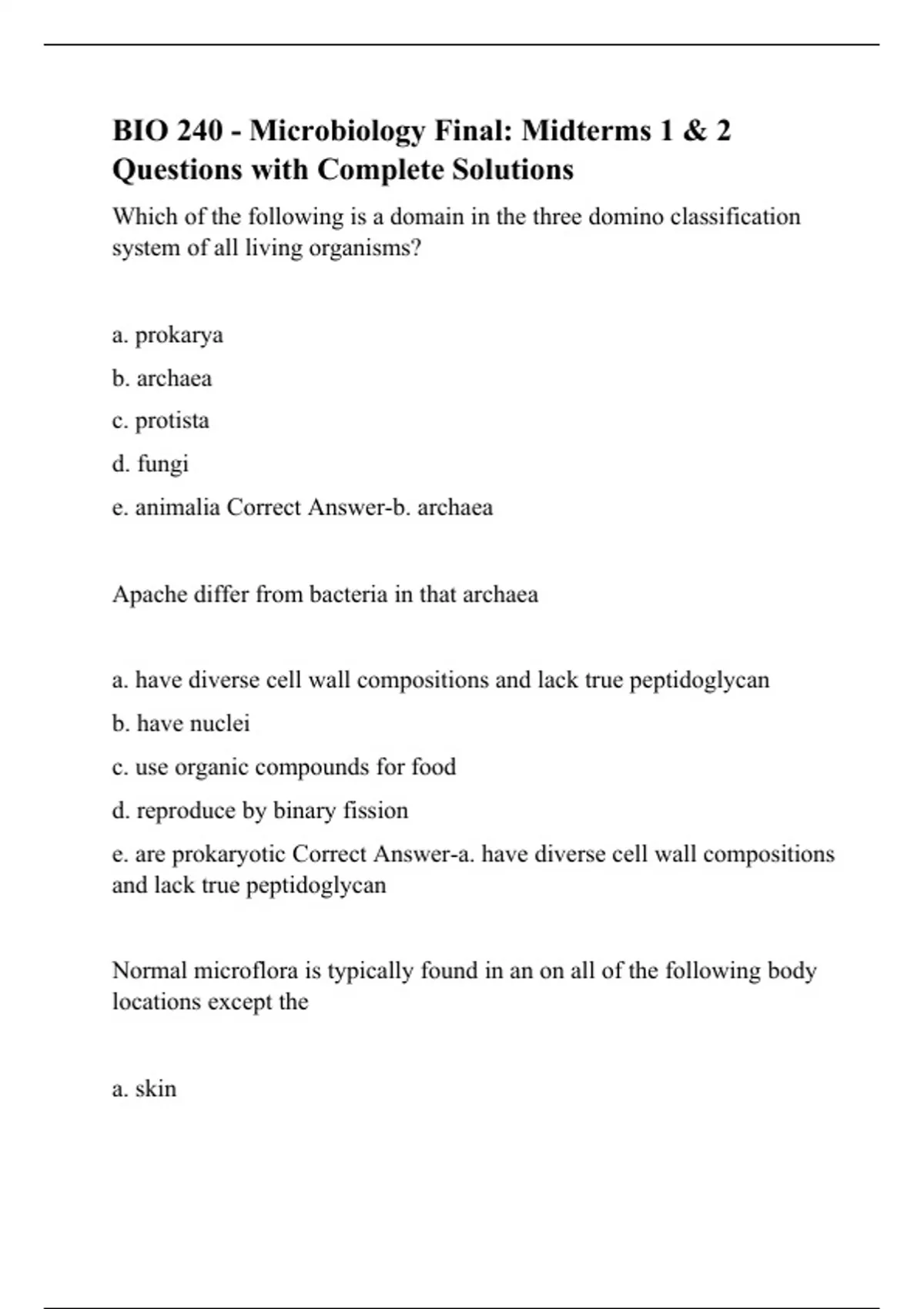 BIO 240 - Microbiology Final: Midterms 1 & 2 Questions with Complete Solutions