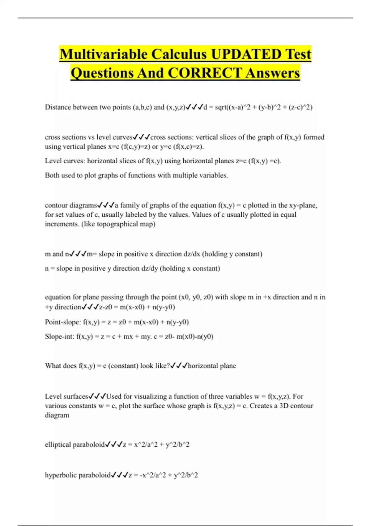 Multivariable Calculus UPDATED Test Questions And CORRECT Answers
