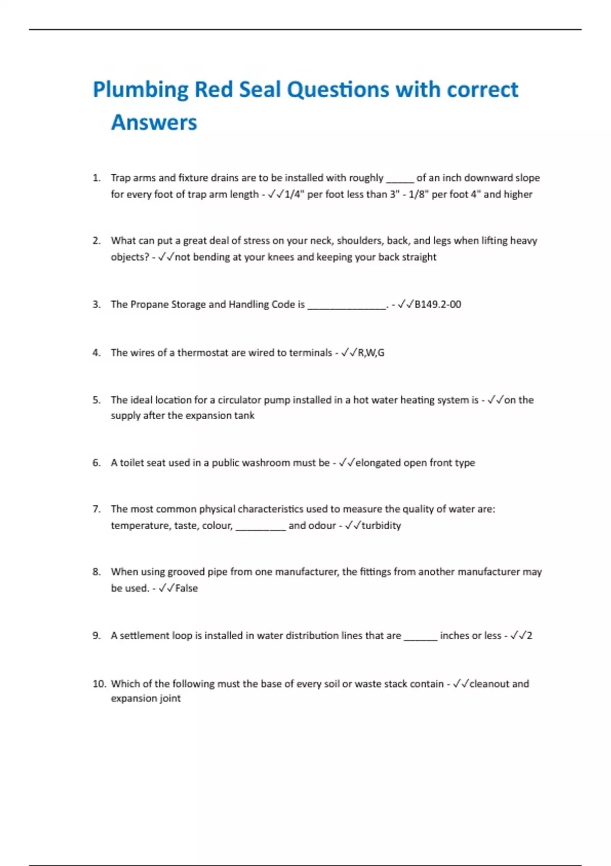 plumbing red seal questions with correct answers
