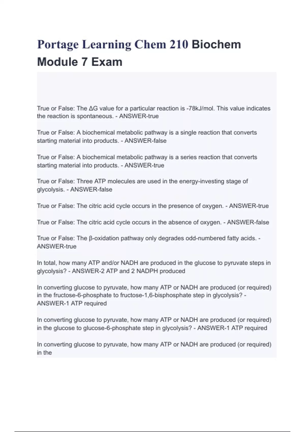 Portage Learning Chem 210 Biochem Module 7 Exam With correct scholarly solution