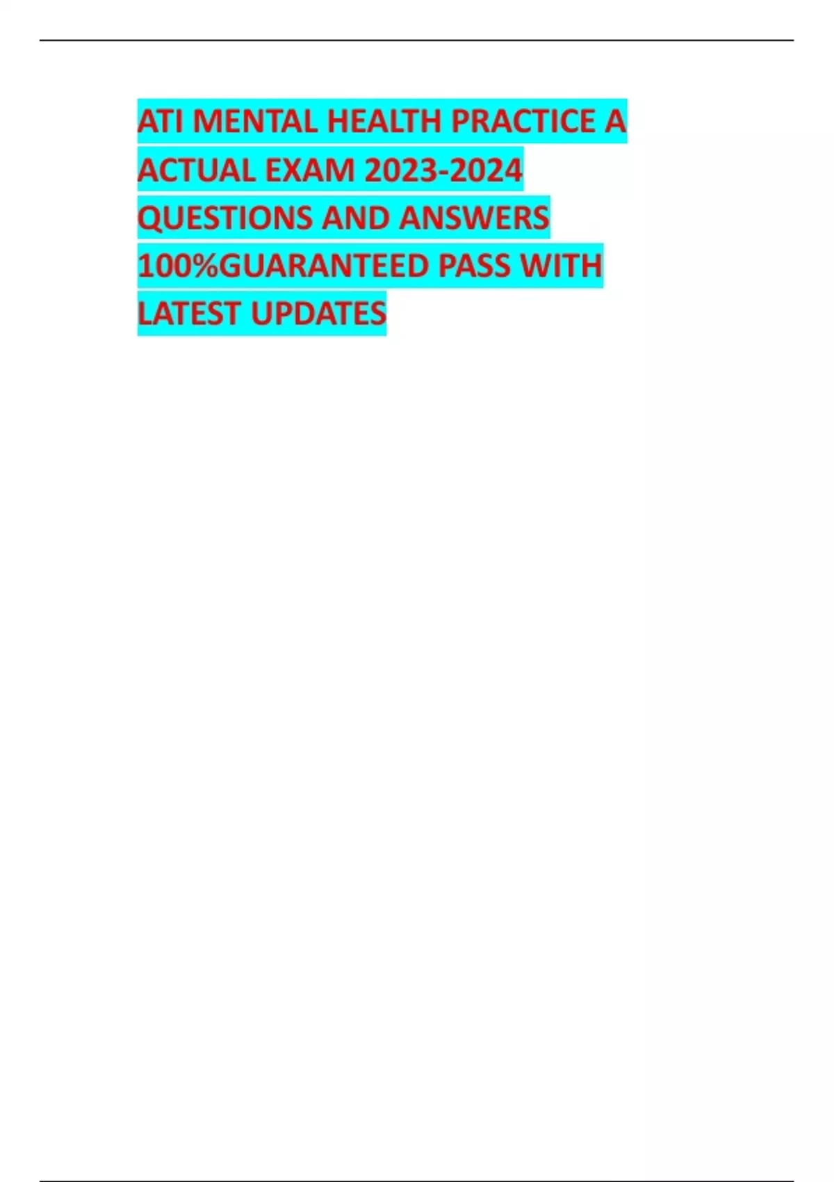 ATI MENTAL HEALTH PRACTICE A ACTUAL EXAM QUESTIONS AND ANSWERS 100%GUARANTEED PASS WITH LATEST UPDATES