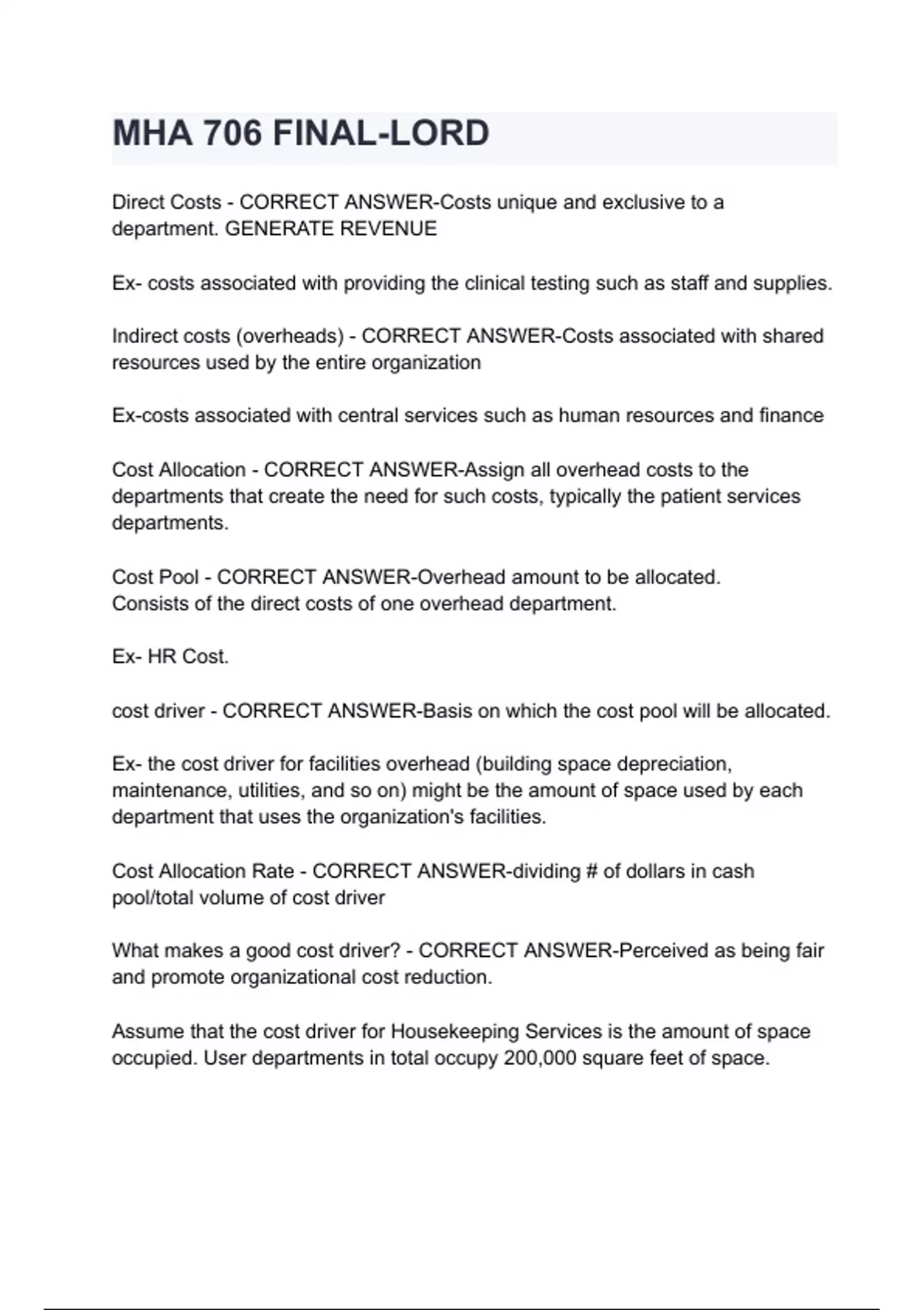 MHA 706 FINAL-LORD questions & answers