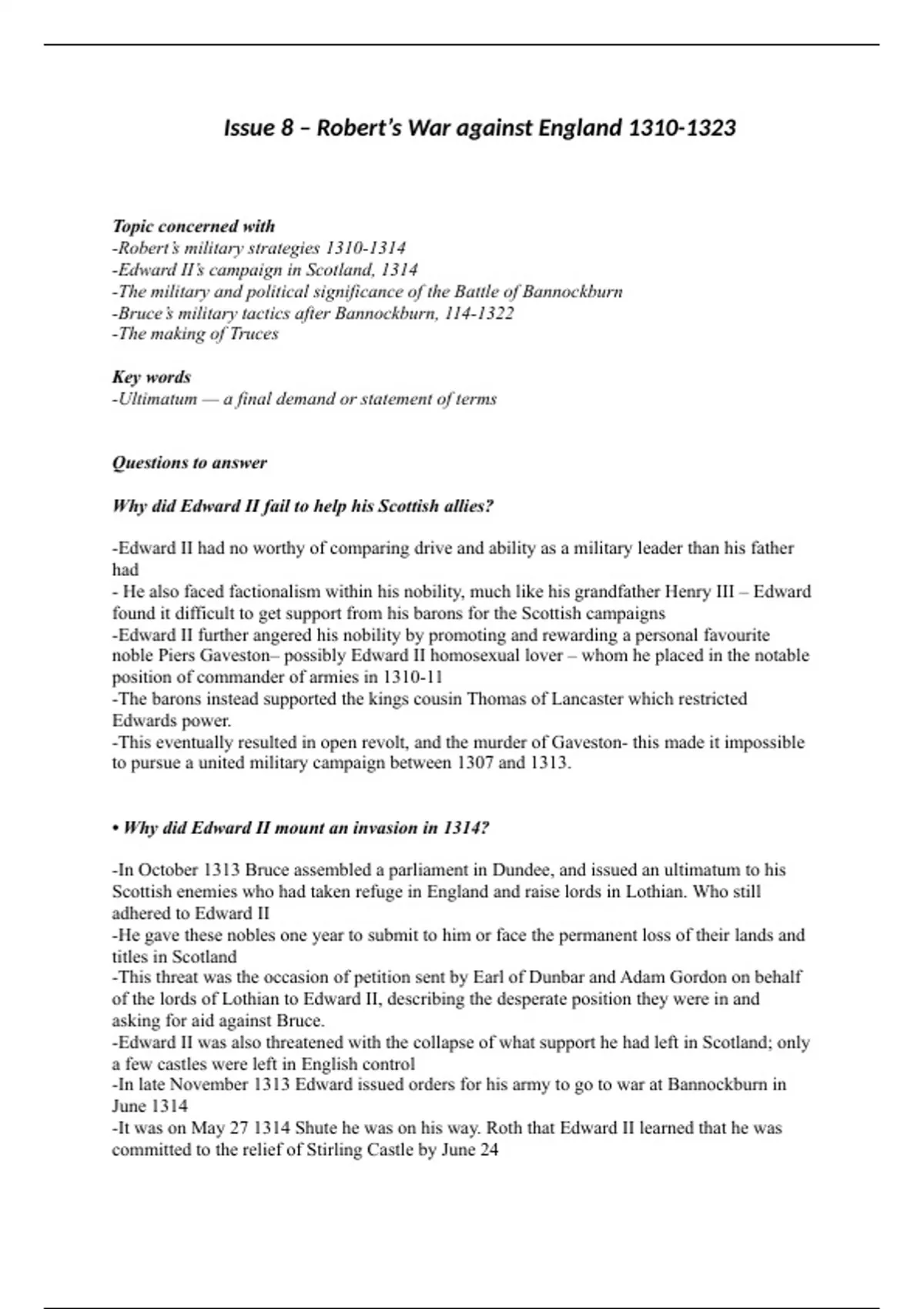(Changed status of Bruce, wiped out Comyns, gave bruce more support, put Scotland’s