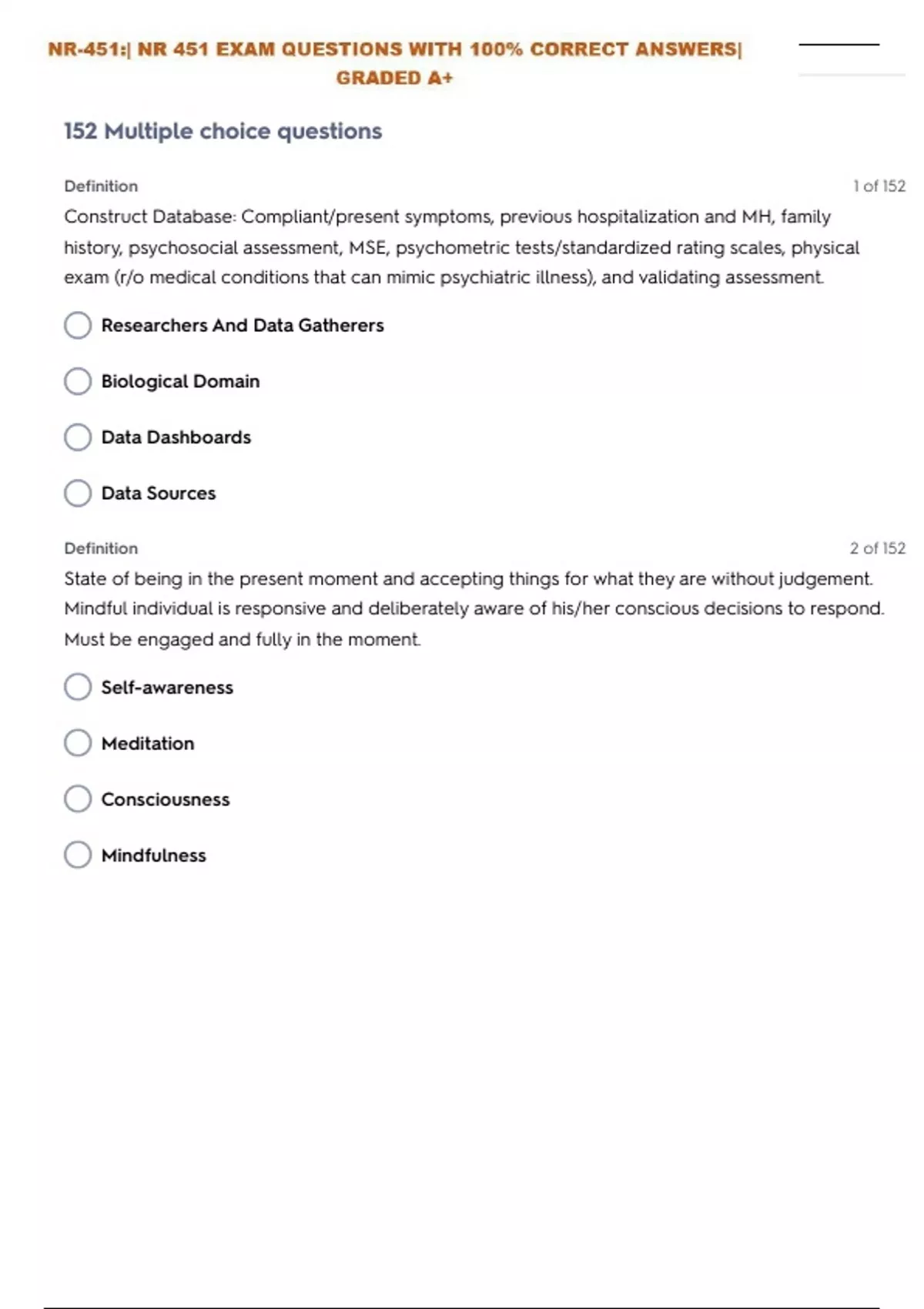 nr 451 nr 451 psych test 1 questions with 100