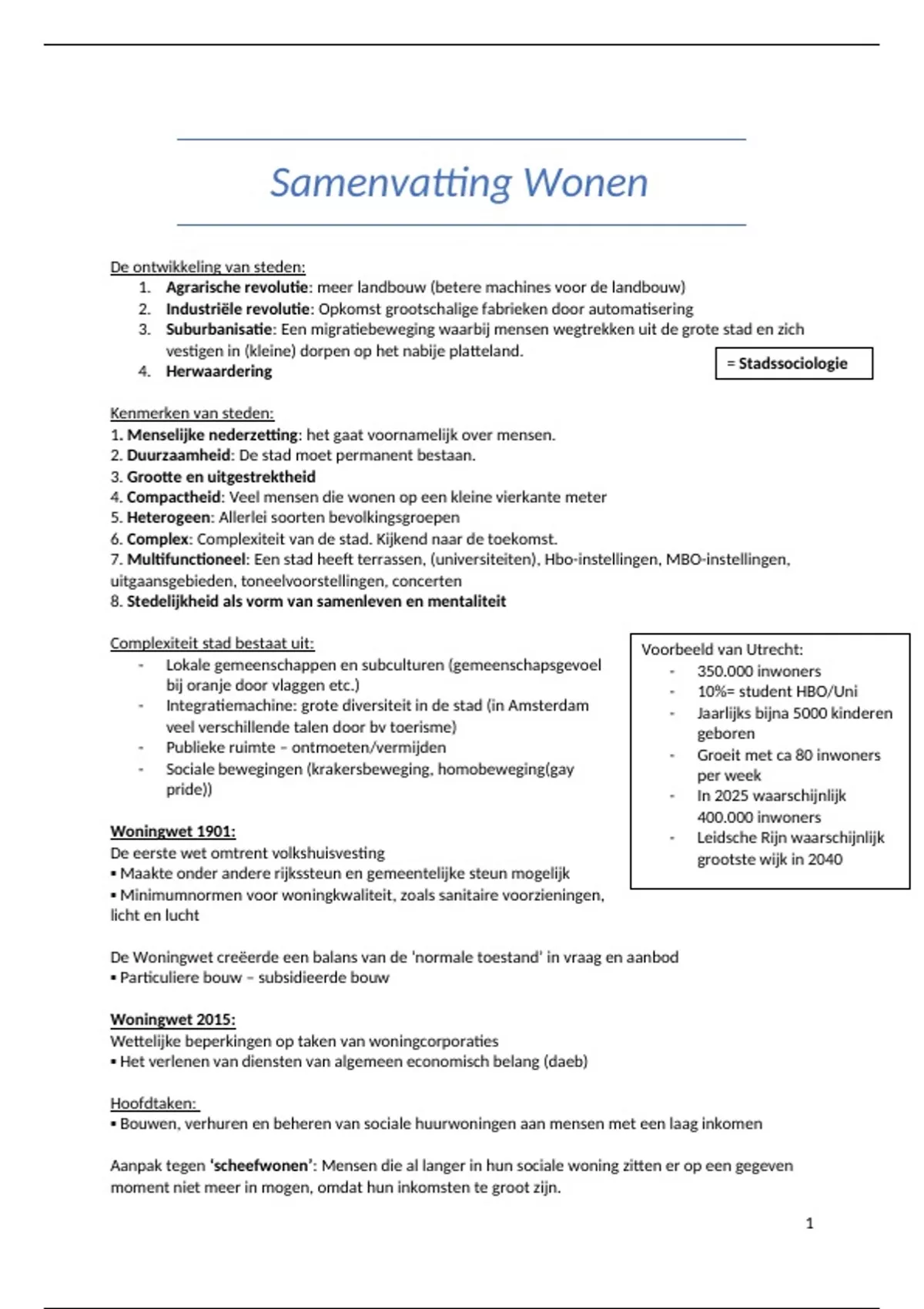Samenvatting Wonen