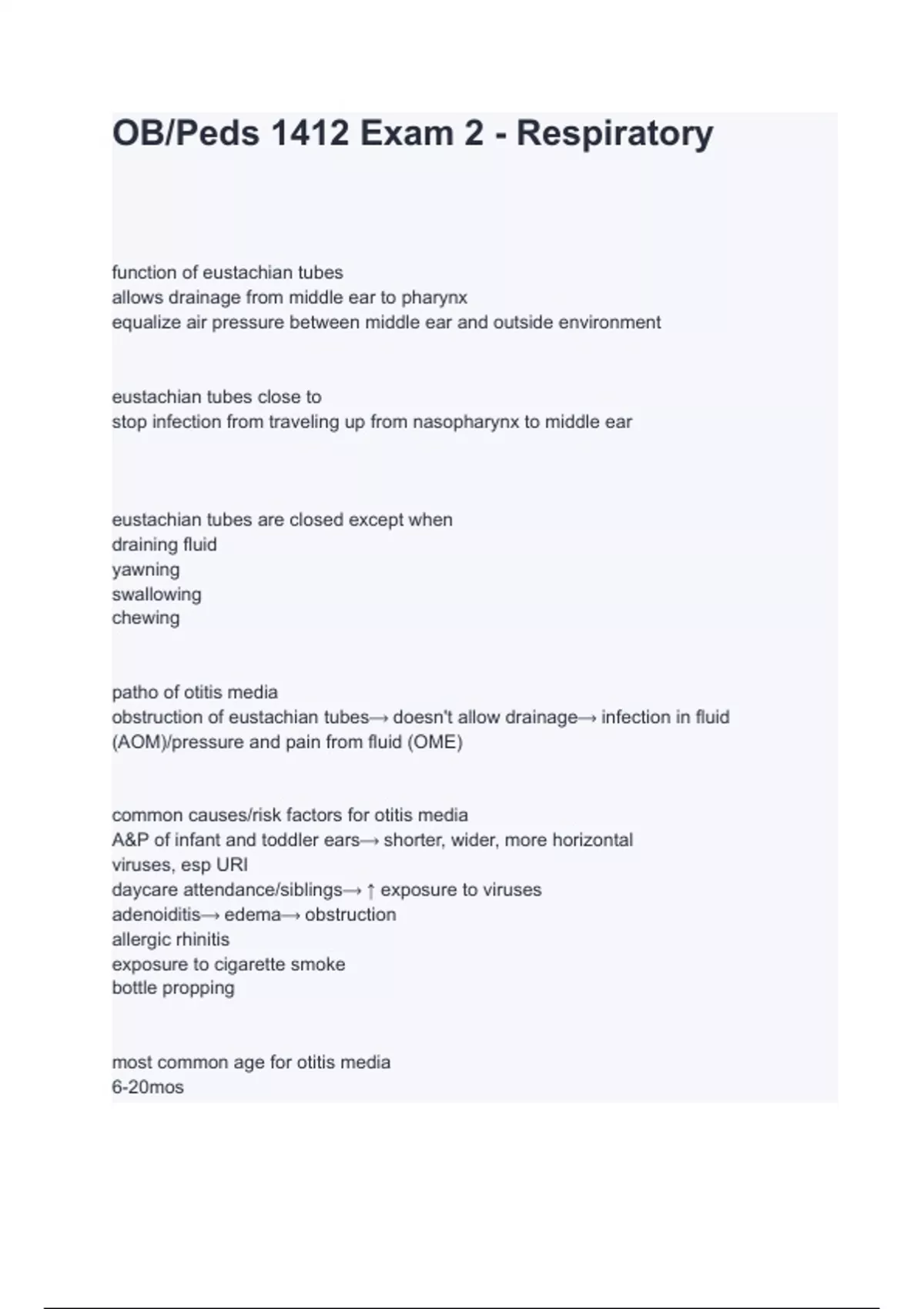 OB/Peds 1412 Exam 2 - Respiratory with complete solution