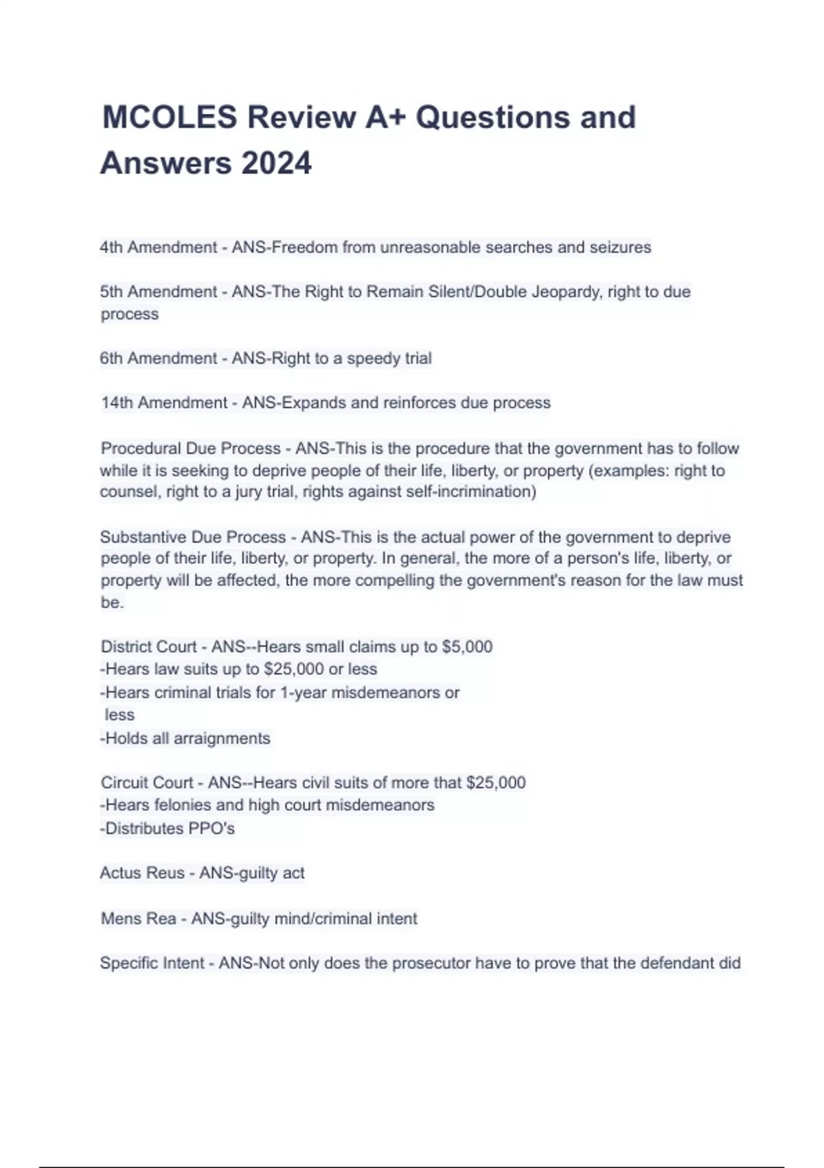 MCOLES Review A+ Questions and Answers 2024