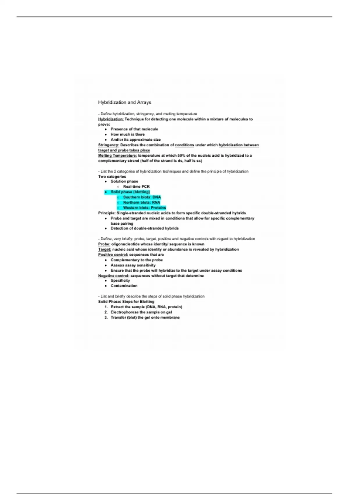 - List and briefly describe the steps of solid phase hybridization