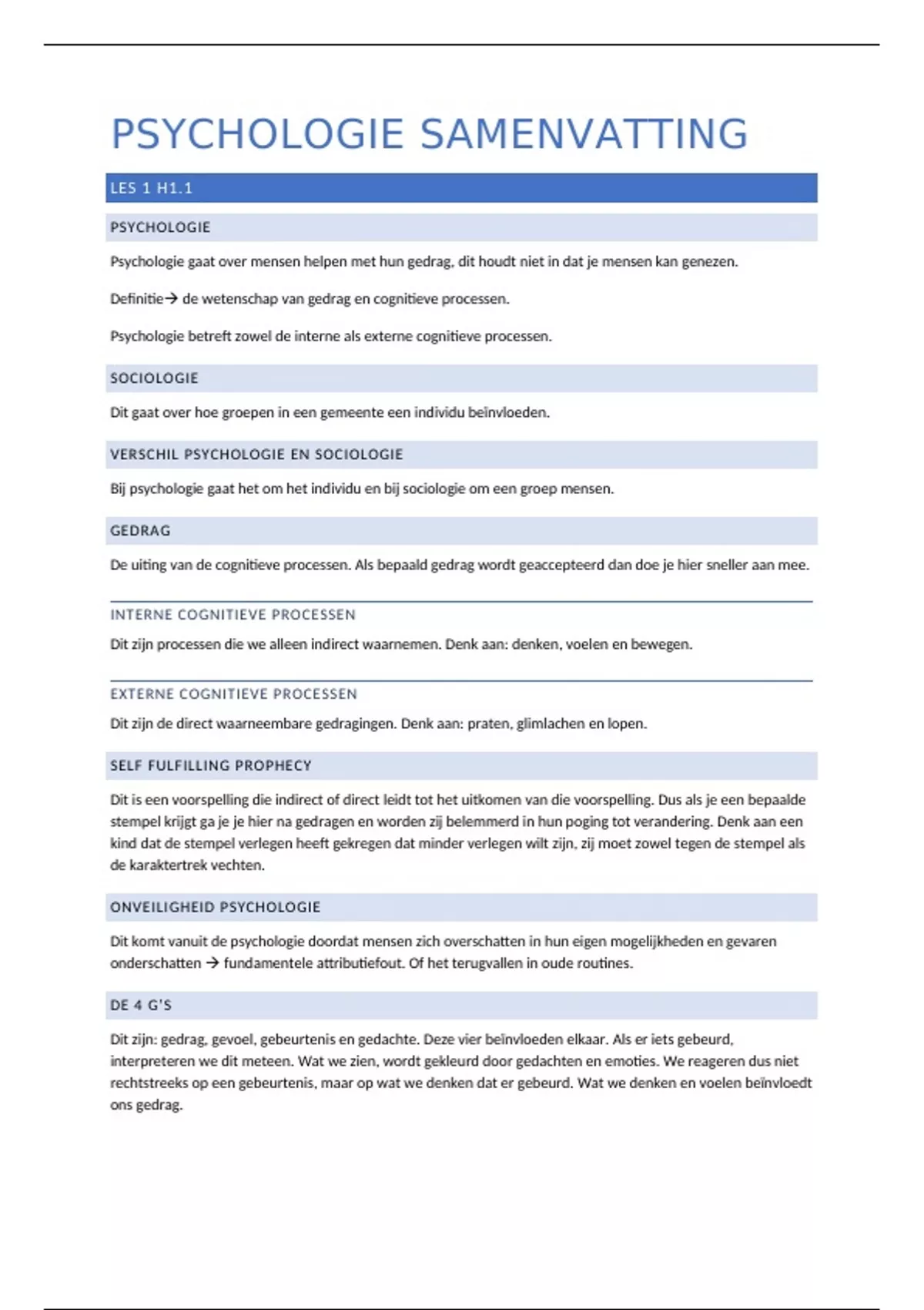 PSYCHOLOGIE SAMENVATTING