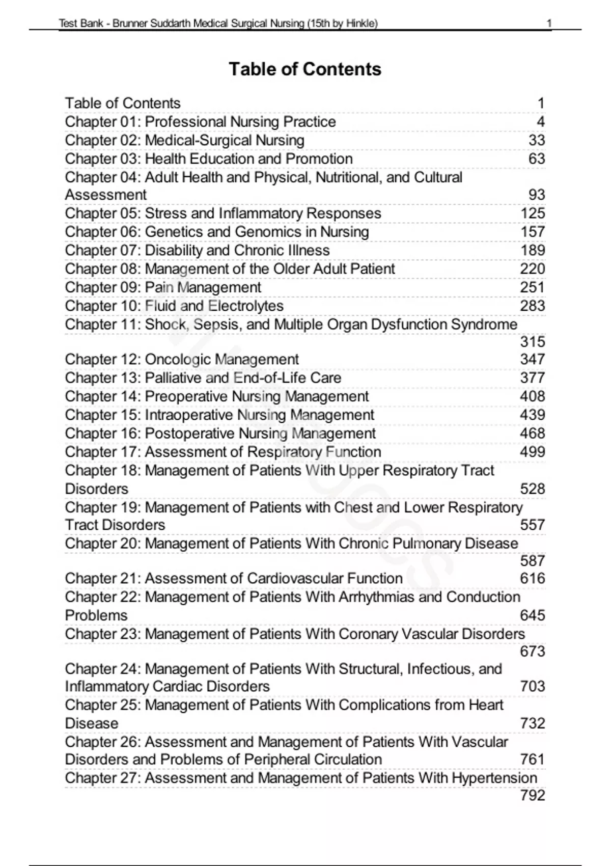 , Test Bank - Brunner Suddarth Medical Surgical Nursing (15th by Hinkle) 4