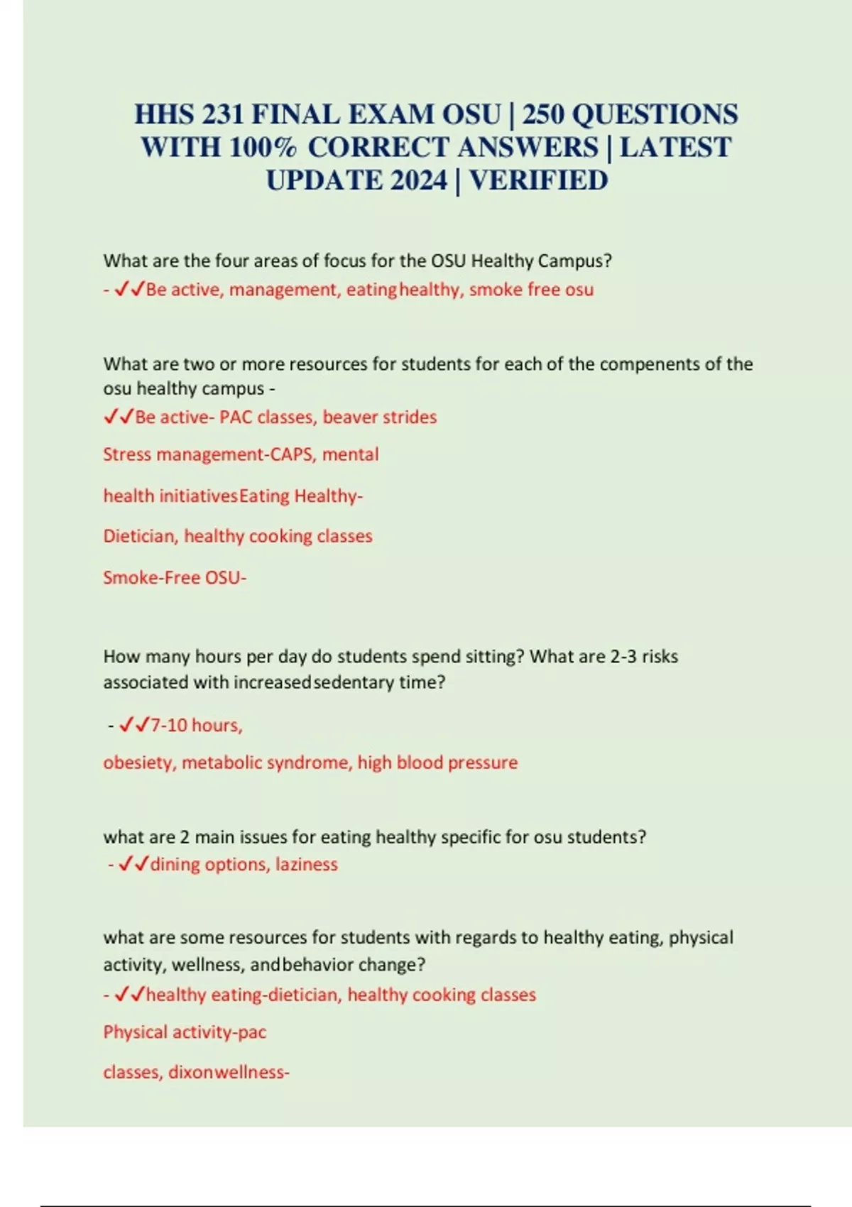 HHS 231 FINAL EXAM OSU | 250 QUESTIONS WITH 100% CORRECT ANSWERS | LATEST UPDATE 2024 | VERIFIED