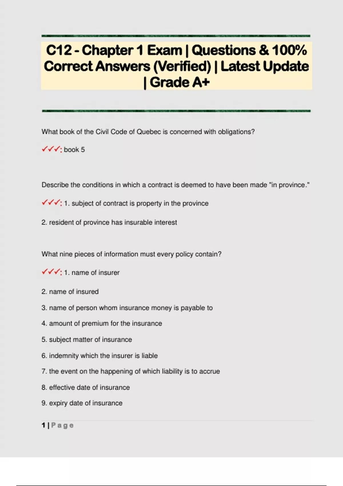 C12 - Chapter 1 Exam | Questions & 100% Correct Answers (Verified) | Latest Update | Grade A+