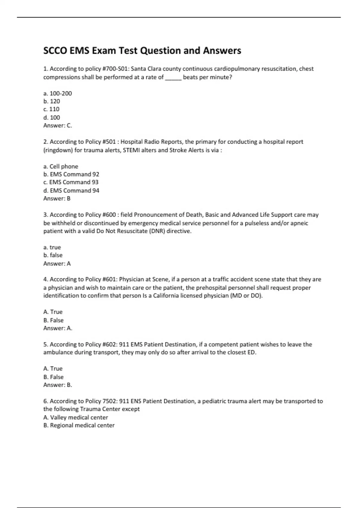 SCCO EMS Exam Test Question and Answers EMT practice test questions and answers EMT exam questions and answers PDF EMT exam test EMT exam study guide EMT exam preparation EMT study set