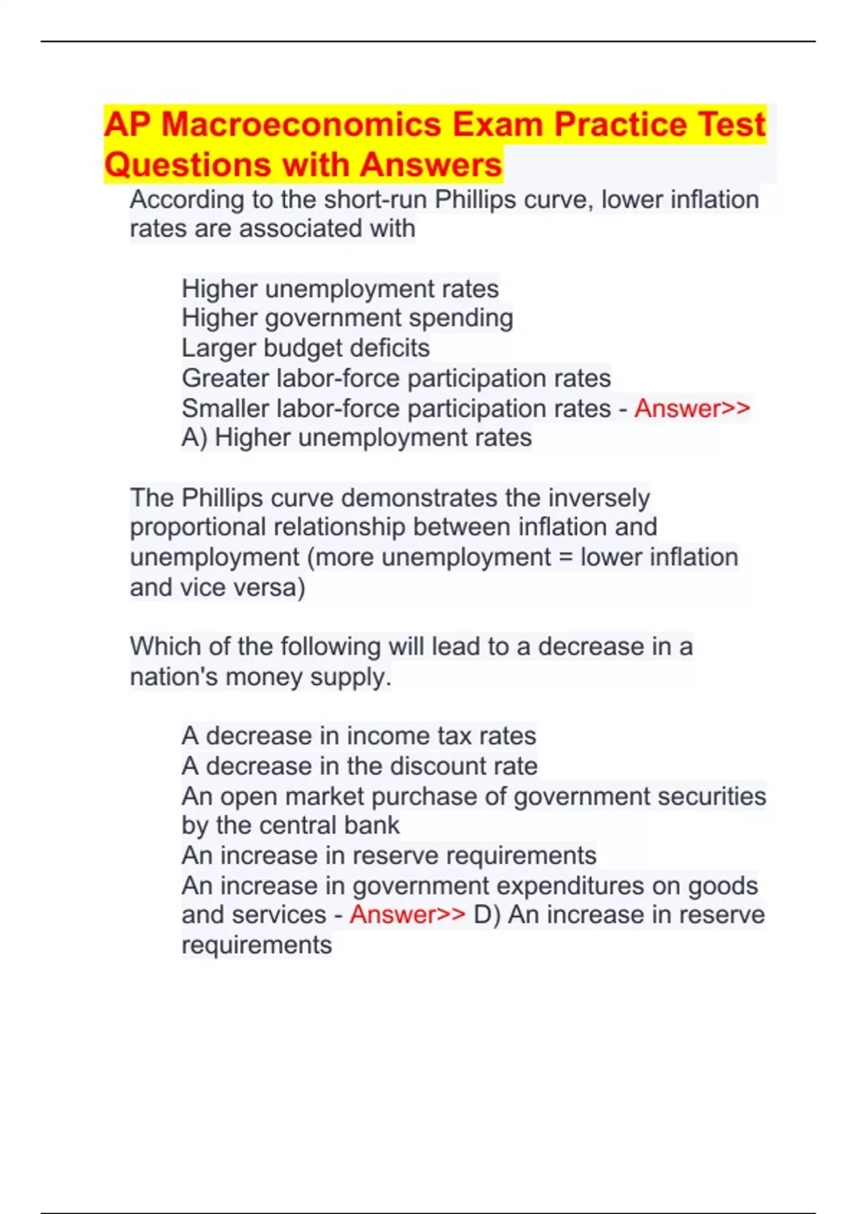 AP Macroeconomics Exam Practice Test Questions with Answers