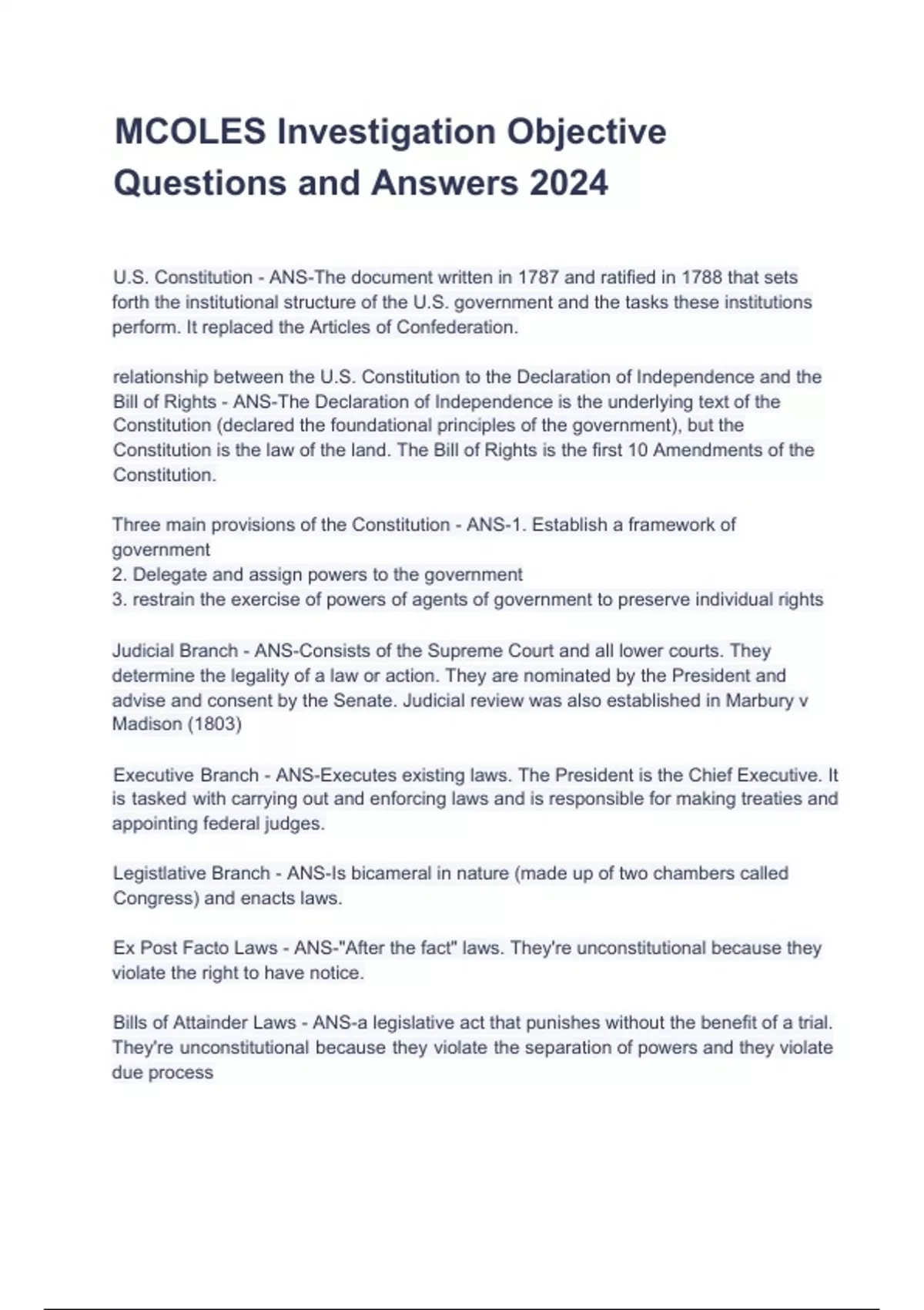 mcoles investigation objective questions and answe