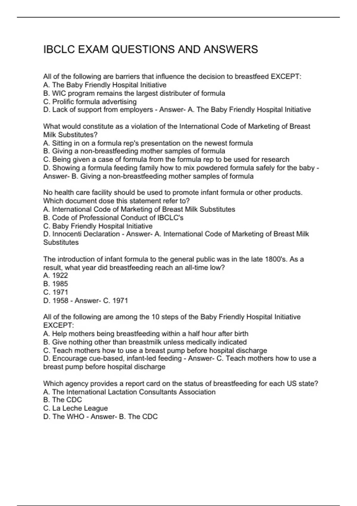 IBCLC EXAM QUESTIONS AND ANSWERS