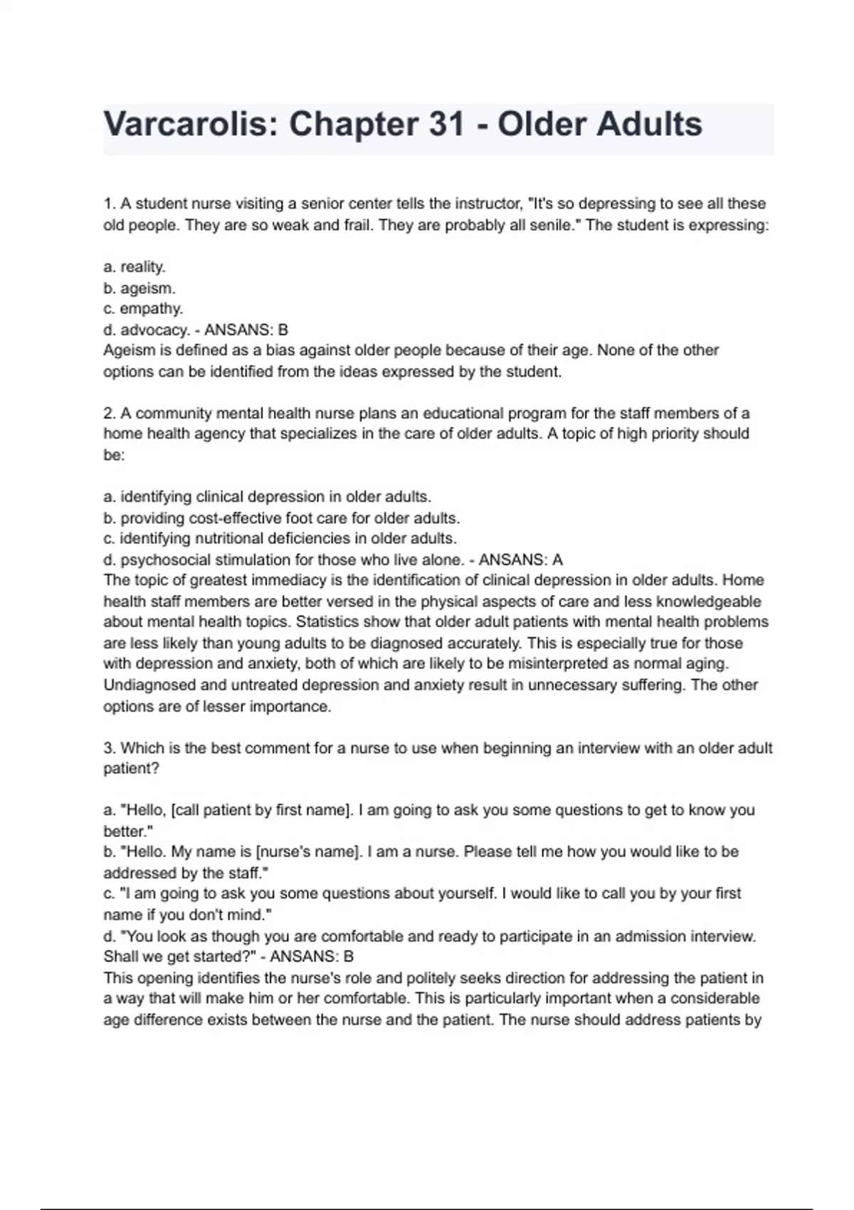 1. A student nurse visiting a senior center tells the instructor, "It's so depressing to see all these