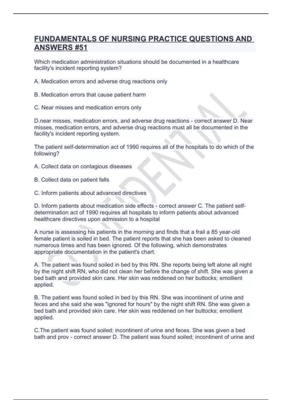 FUNDAMENTALS OF NURSING PRACTICE QUESTIONS AND ANSWERS #51
