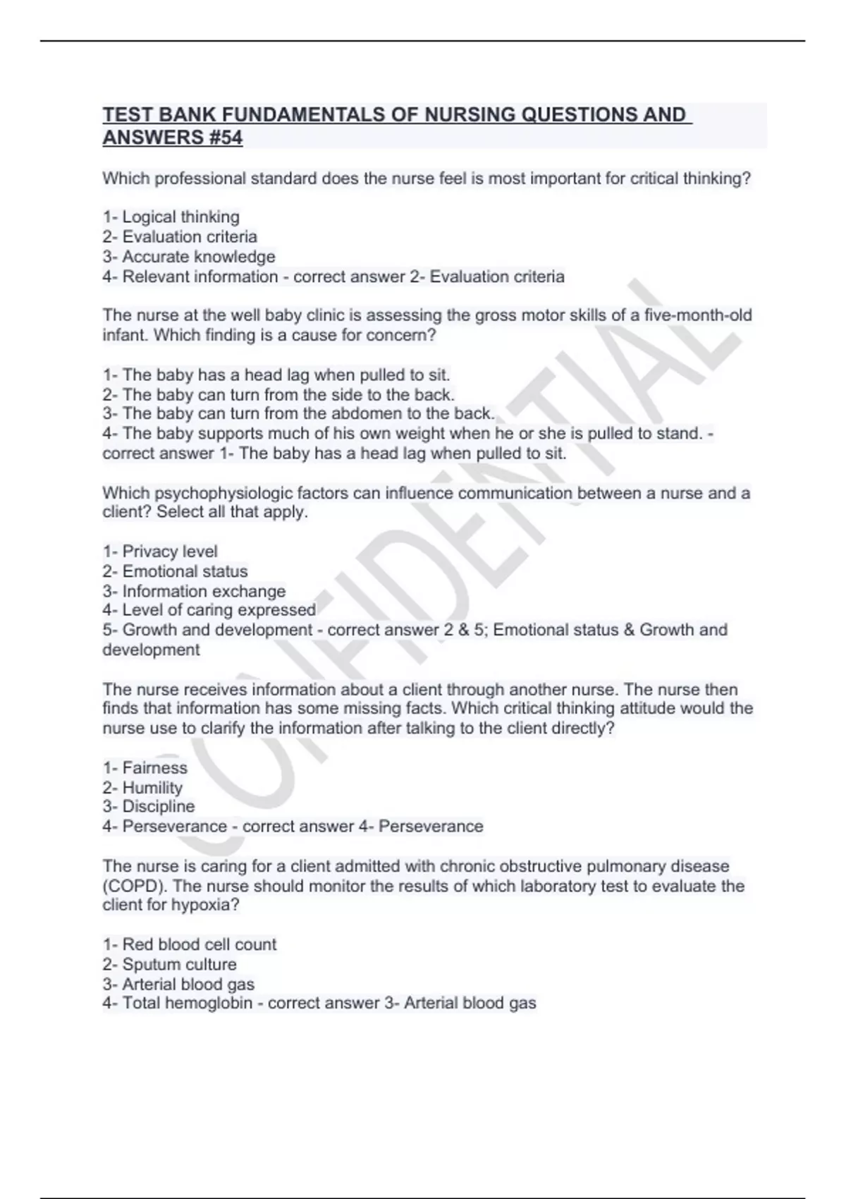 TEST BANK FUNDAMENTALS OF NURSING QUESTIONS AND ANSWERS #54