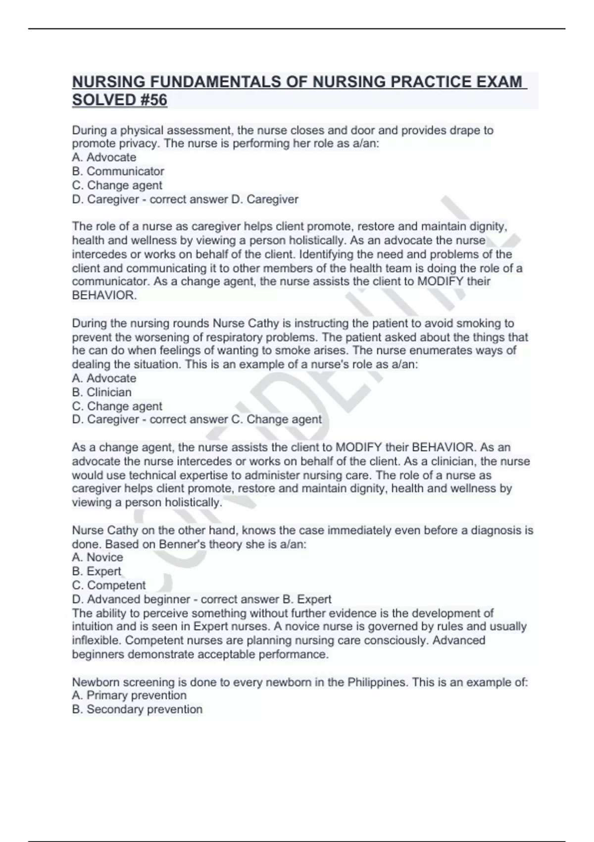 NURSING FUNDAMENTALS OF NURSING PRACTICE EXAM SOLVED #56.