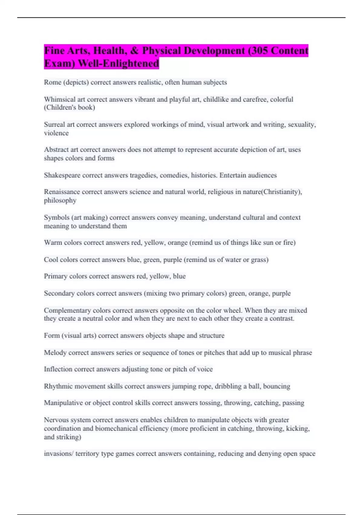 Fine Arts, Health, & Physical Development (305 Content Exam) Well-Enlightened