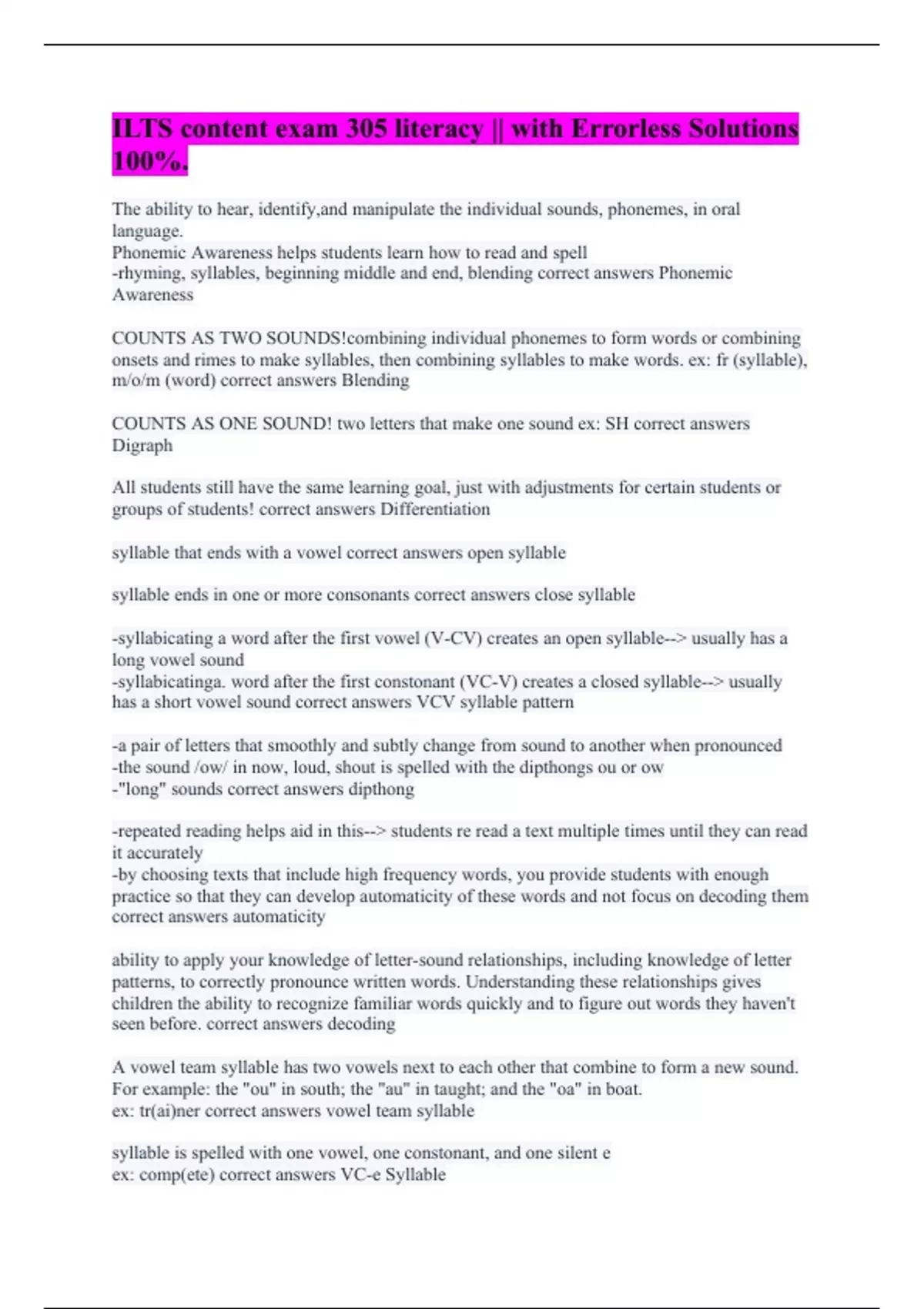 ILTS content exam 305 literacy || with Errorless Solutions 100%.