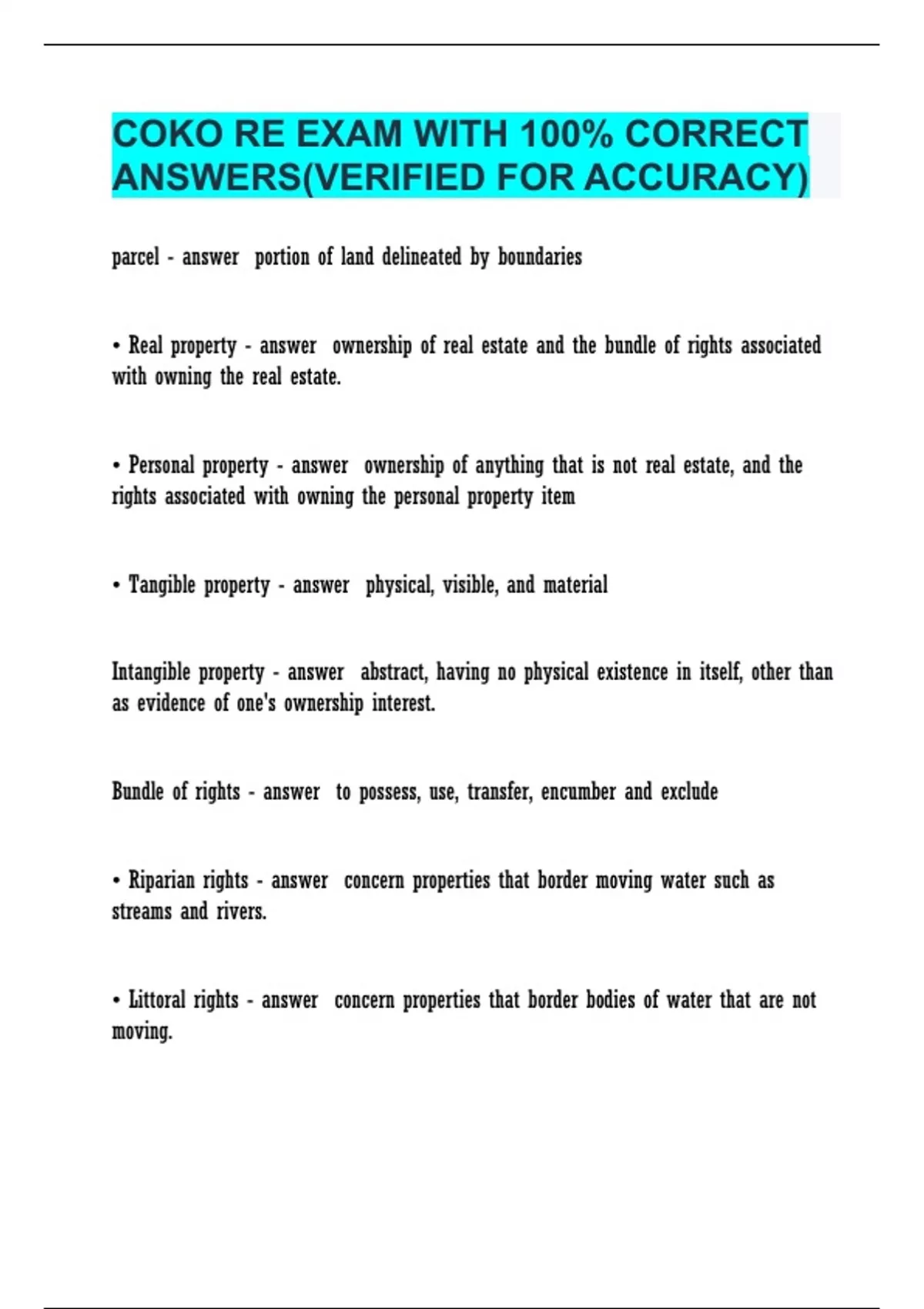 COKO RE EXAM WITH 100% CORRECT ANSWERS(VERIFIED FOR ACCURACY)