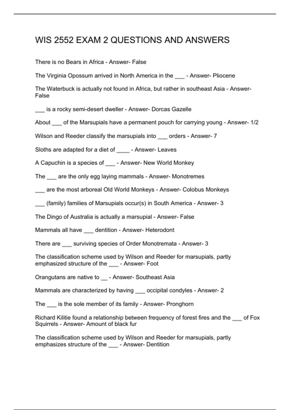 WIS 2552 EXAM 2 QUESTIONS AND ANSWERS