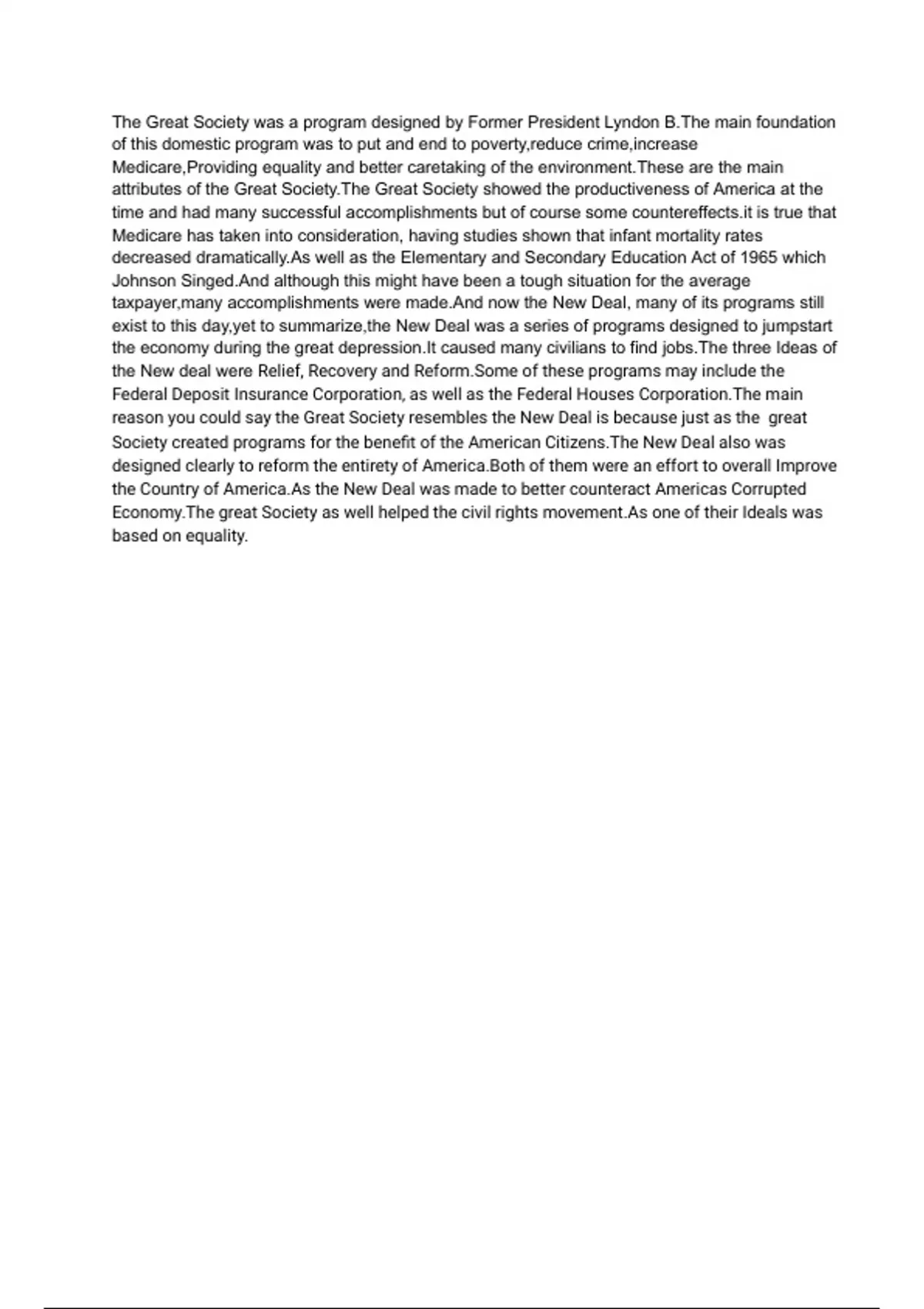 This Passage written from an AP students describes an overview of the Great Society and how important and recent it was and the effect it had on our economy as well as its tribulations during the Cold War and the Vietnam war