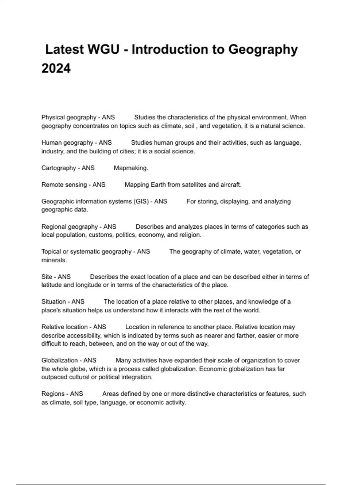 Latest WGU - Introduction to Geography 2024 Questions With Complete Solutions