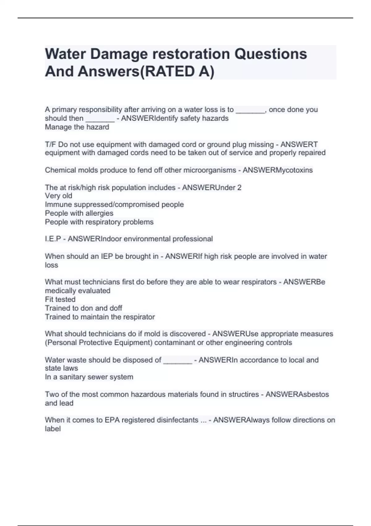 A primary responsibility after arriving on a water loss is to _______, once done you should then _______ - ANSWERIdentify safety hazards