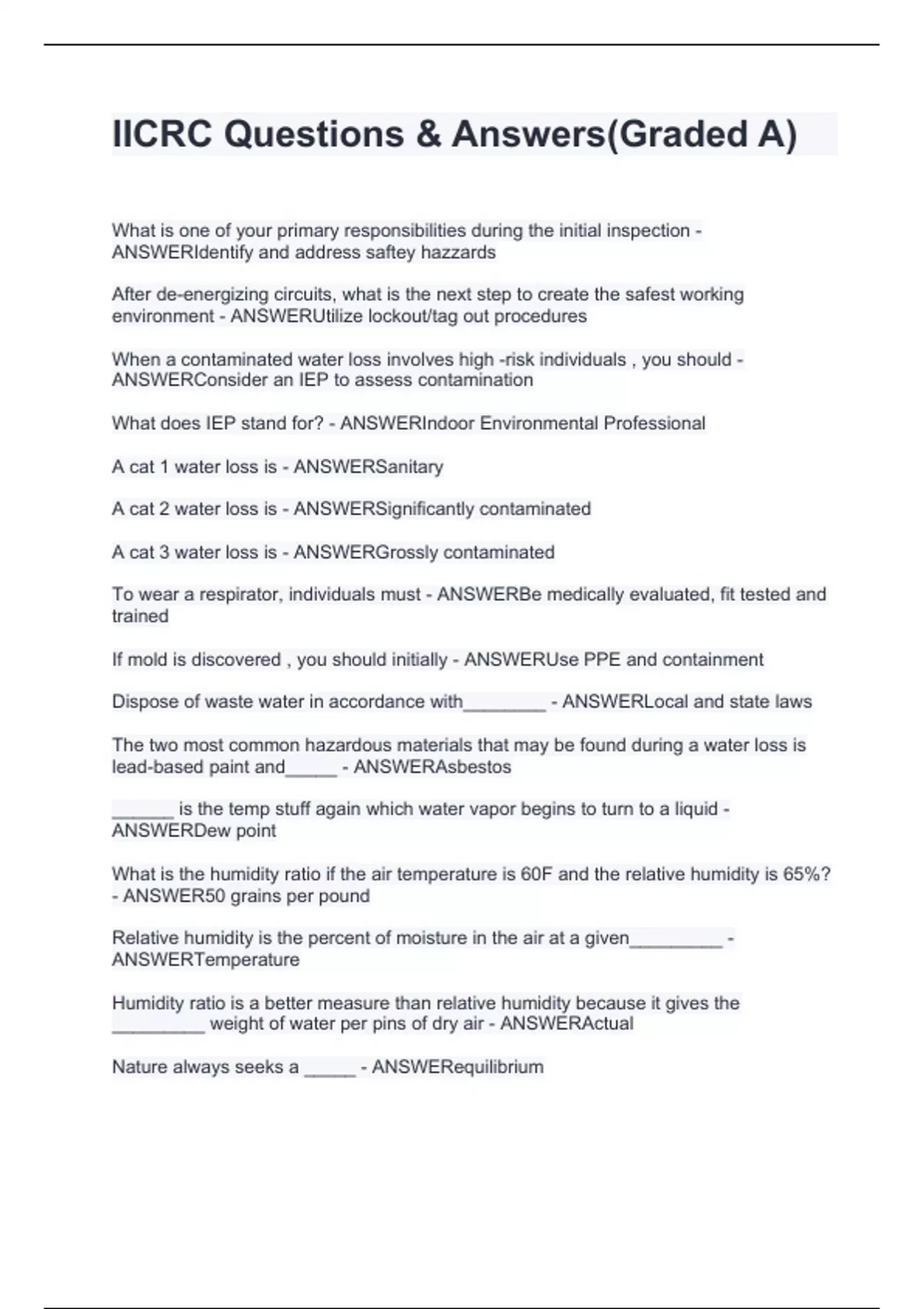 The two most common hazardous materials that may be found during a water loss is lead-based paint and_____ - ANSWERAsbestos
