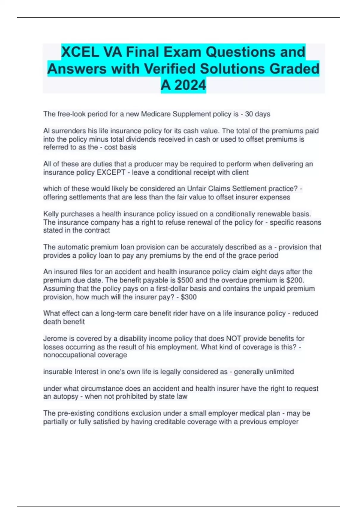 XCEL VA Final Exam Questions and Answers with Verified Solutions Graded A 2024