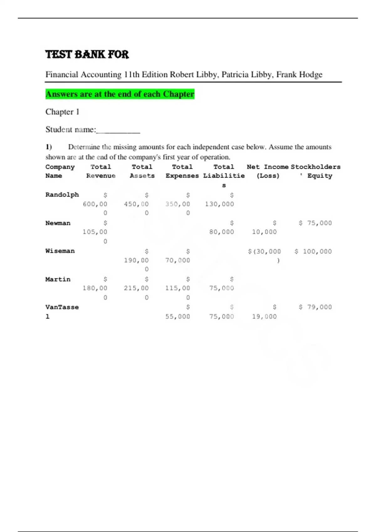 Test Bank for Financial Accounting 11th Edition Robert Libby, Patricia Libby, Frank Hodge