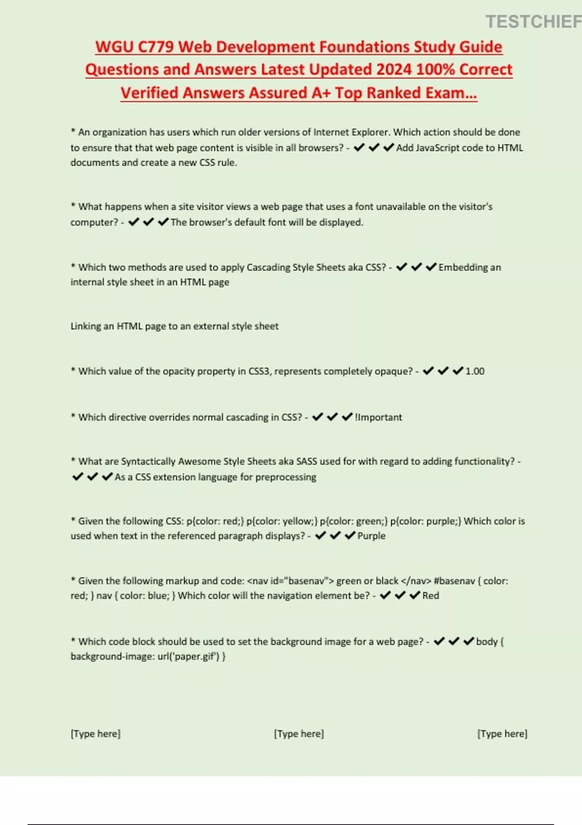 Wgu c779 web development foundations study guide questions and answers latest updated 2024||Latest 2024