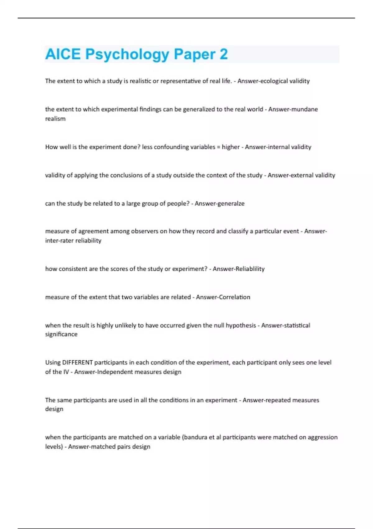 AICE Psychology Paper 2 EXAM(Graded A+ actual test)