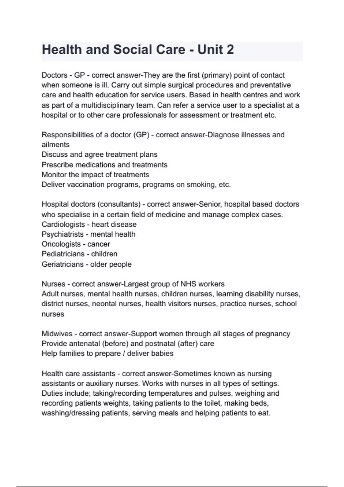 health and social care unit 2 with complete solu