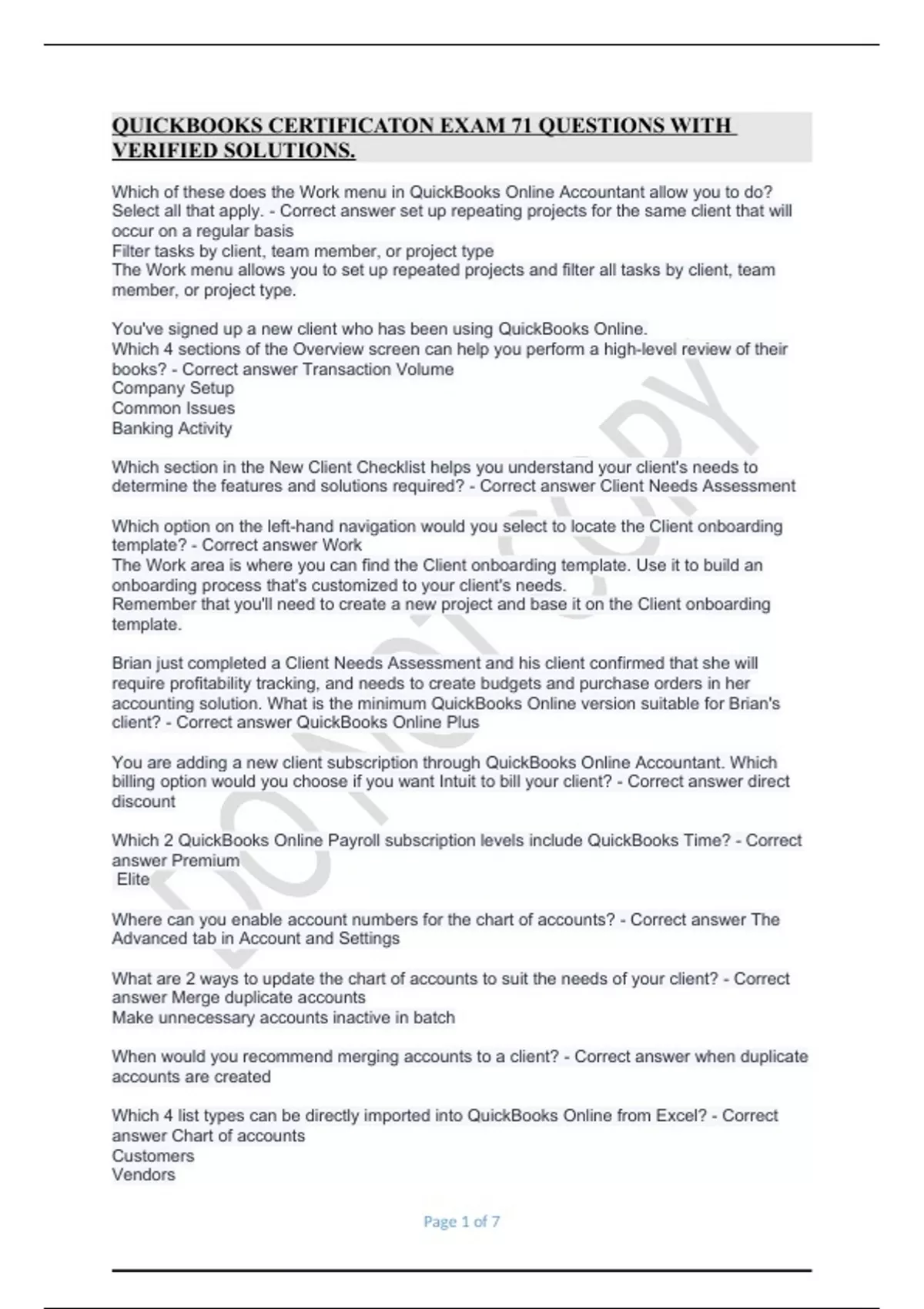 QUICKBOOKS CERTIFICATON EXAM 71 QUESTIONS WITH VERIFIED SOLUTIONSQUICKBOOKS CERTIFICATON EXAM 71 QUESTIONS WITH VERIFIED SOLUTIONS