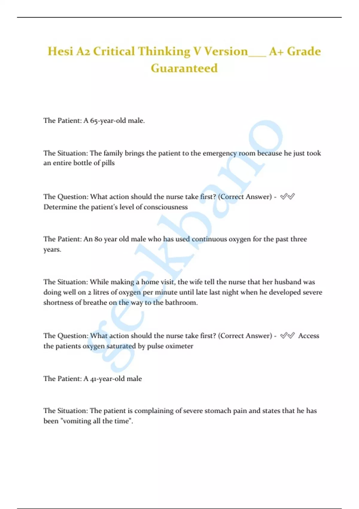 Hesi A2 Critical Thinking V Version___ A+ Grade Guaranteed