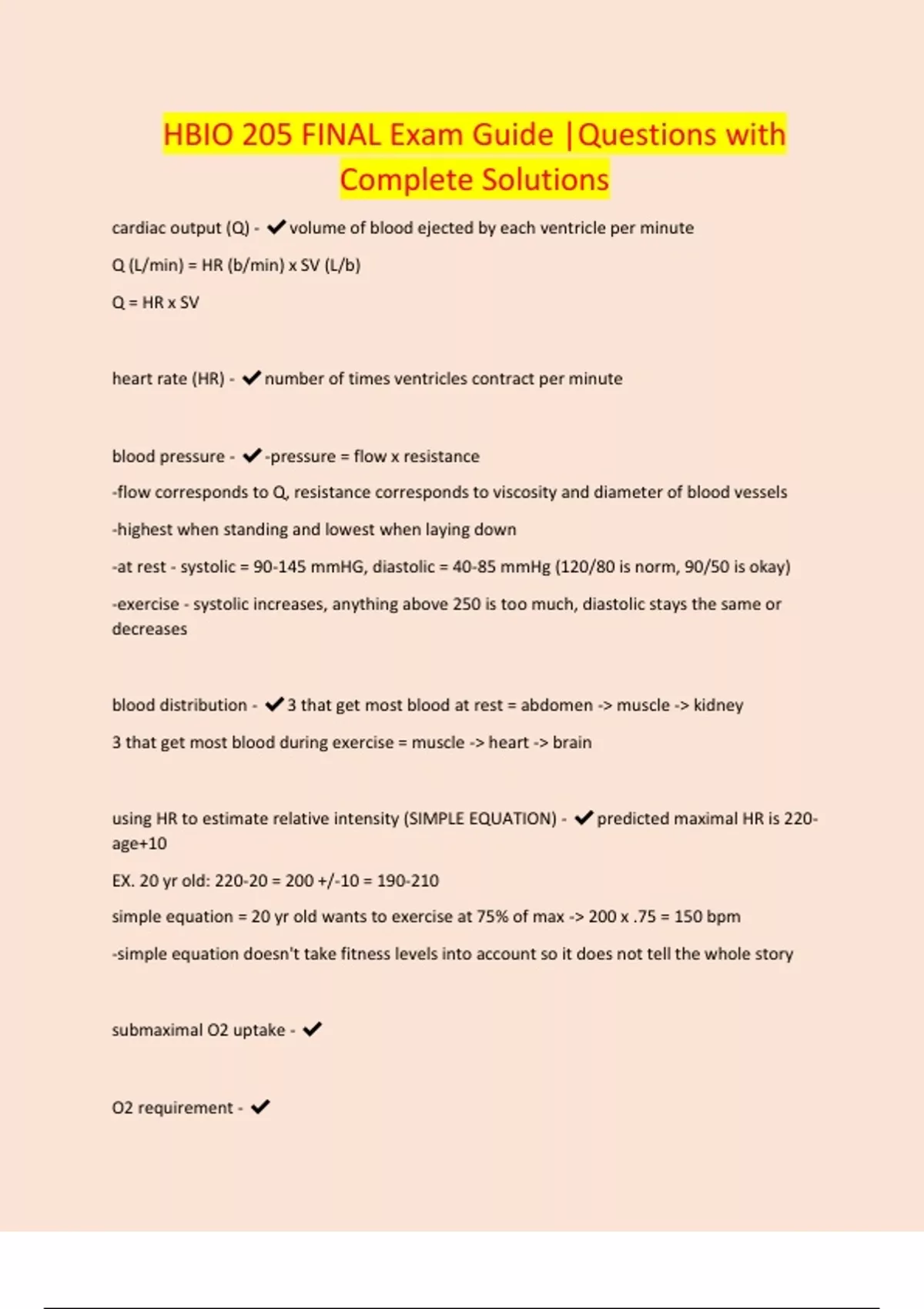 HBIO 205 FINAL Exam Guide |Questions with Complete Solutions