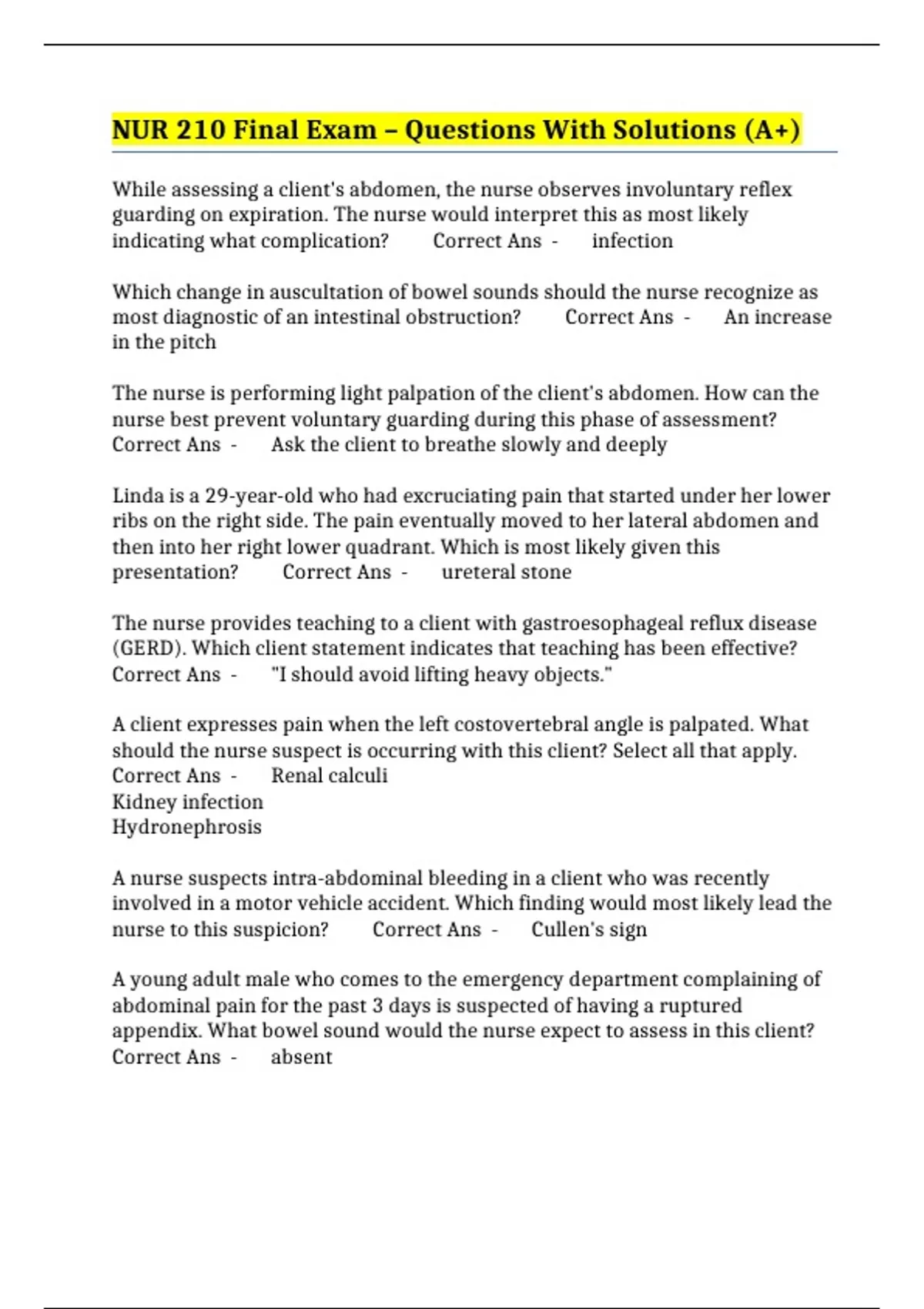 nur 210 final exam questions with solutions a