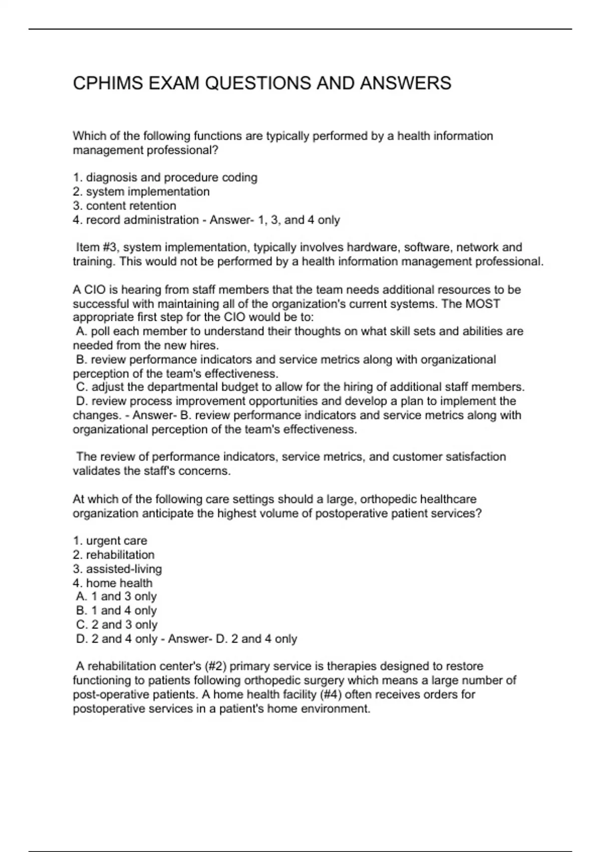 CPHIMS EXAM QUESTIONS AND ANSWERS