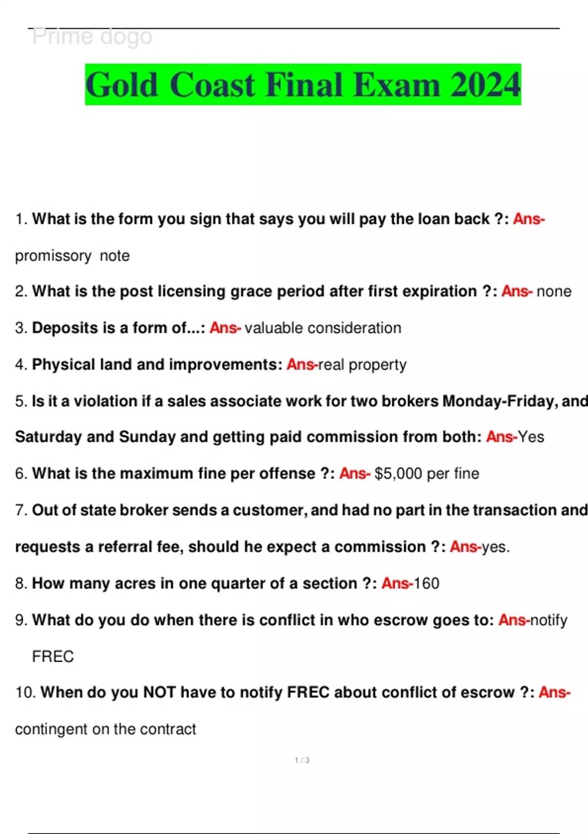 Gold Coast Final Exam 2024||Latest 2024