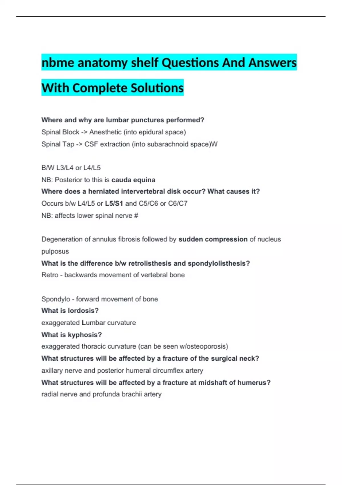 NB: Posterior to this is cauda equina