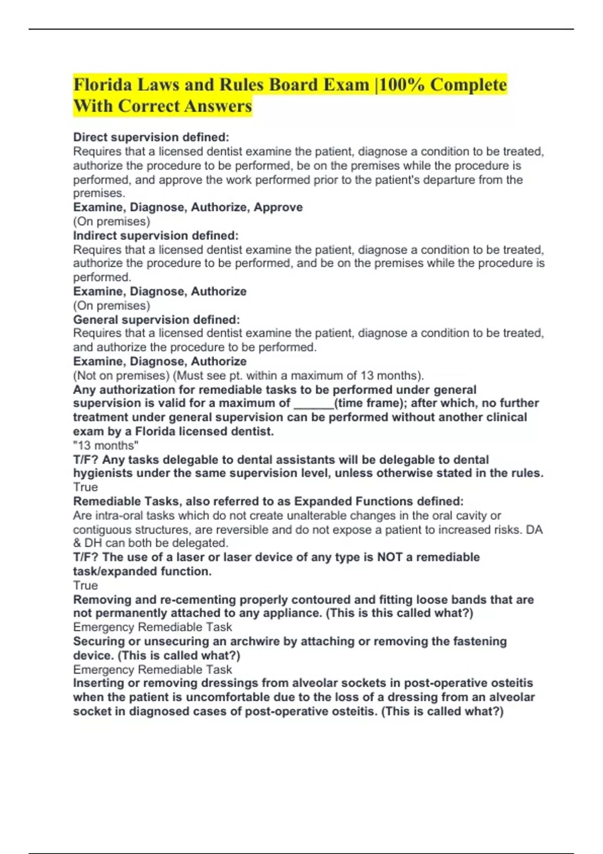 Remediable Task (DH) (received formal training & under DIRECT supervision).