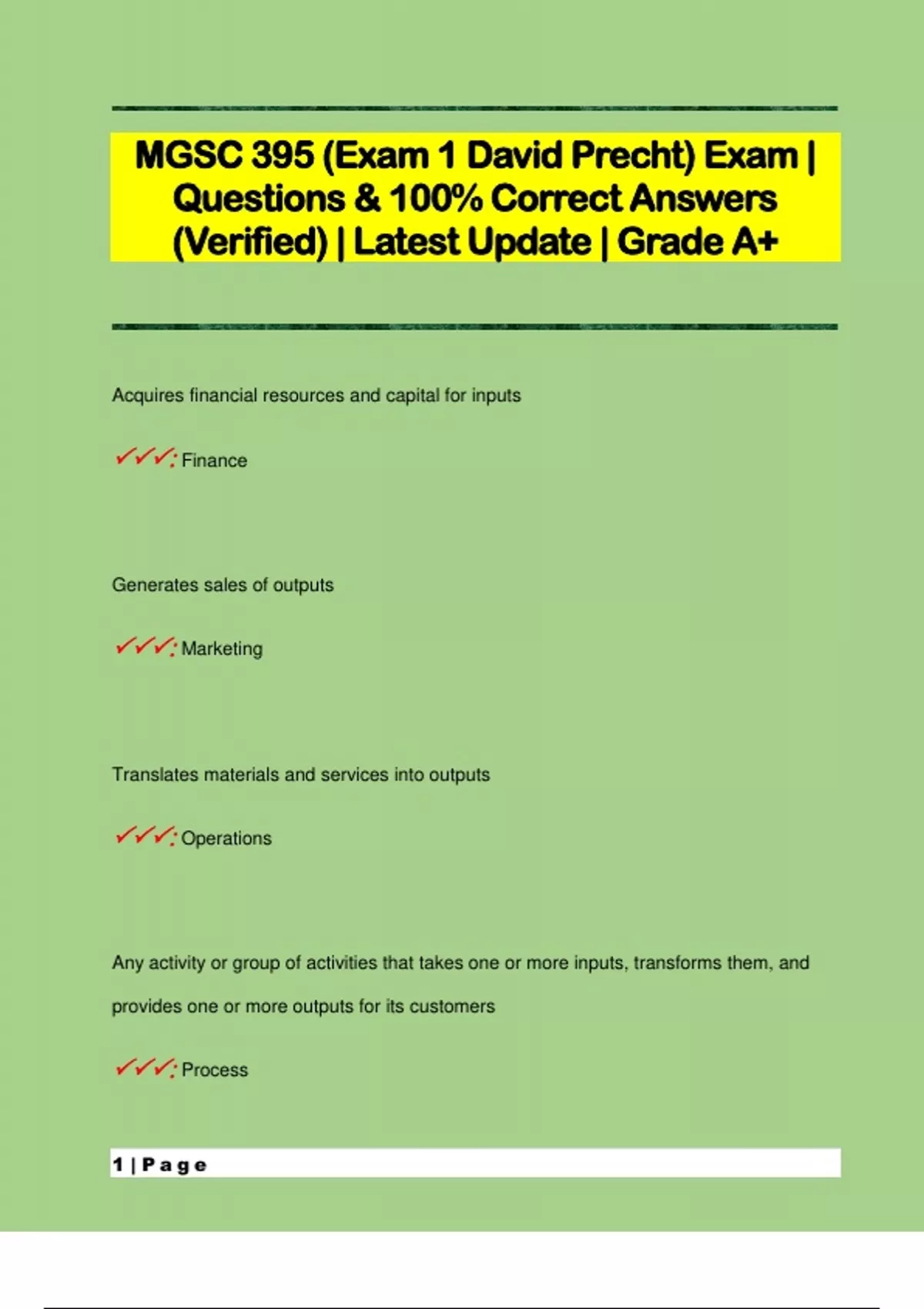 MGSC 395 (Exam 1 David Precht) Exam | Questions & 100% Correct Answers (Verified) | Latest Update | Grade A+