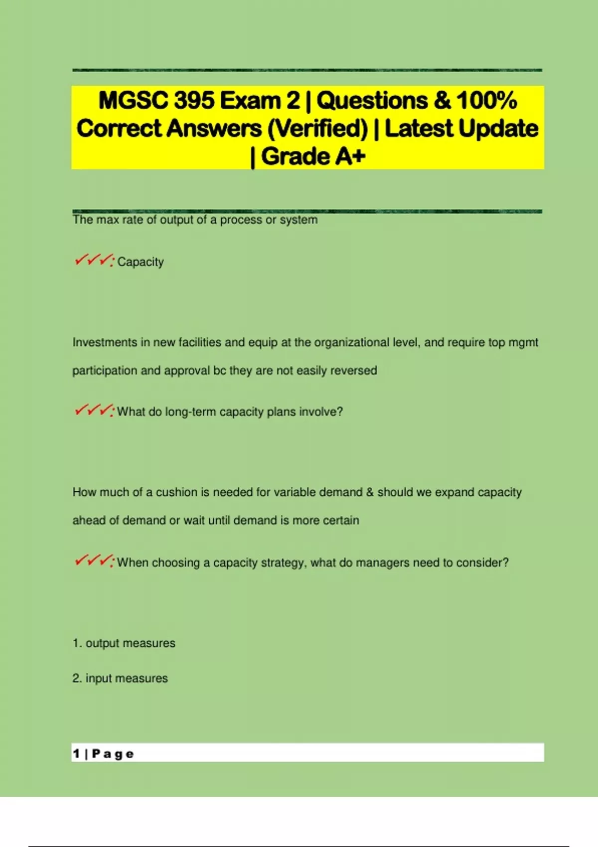 MGSC 395 Exam 2 | Questions & 100% Correct Answers (Verified) | Latest Update | Grade A+