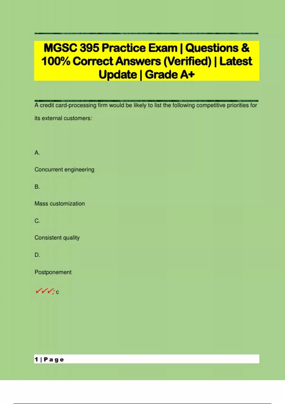 MGSC 395 Practice Exam | Questions & 100% Correct Answers (Verified) | Latest Update | Grade A+