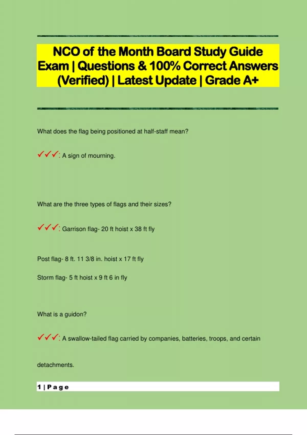 NCO of the Month Board Study Guide Exam | Questions & 100% Correct Answers (Verified) | Latest Update | Grade A+